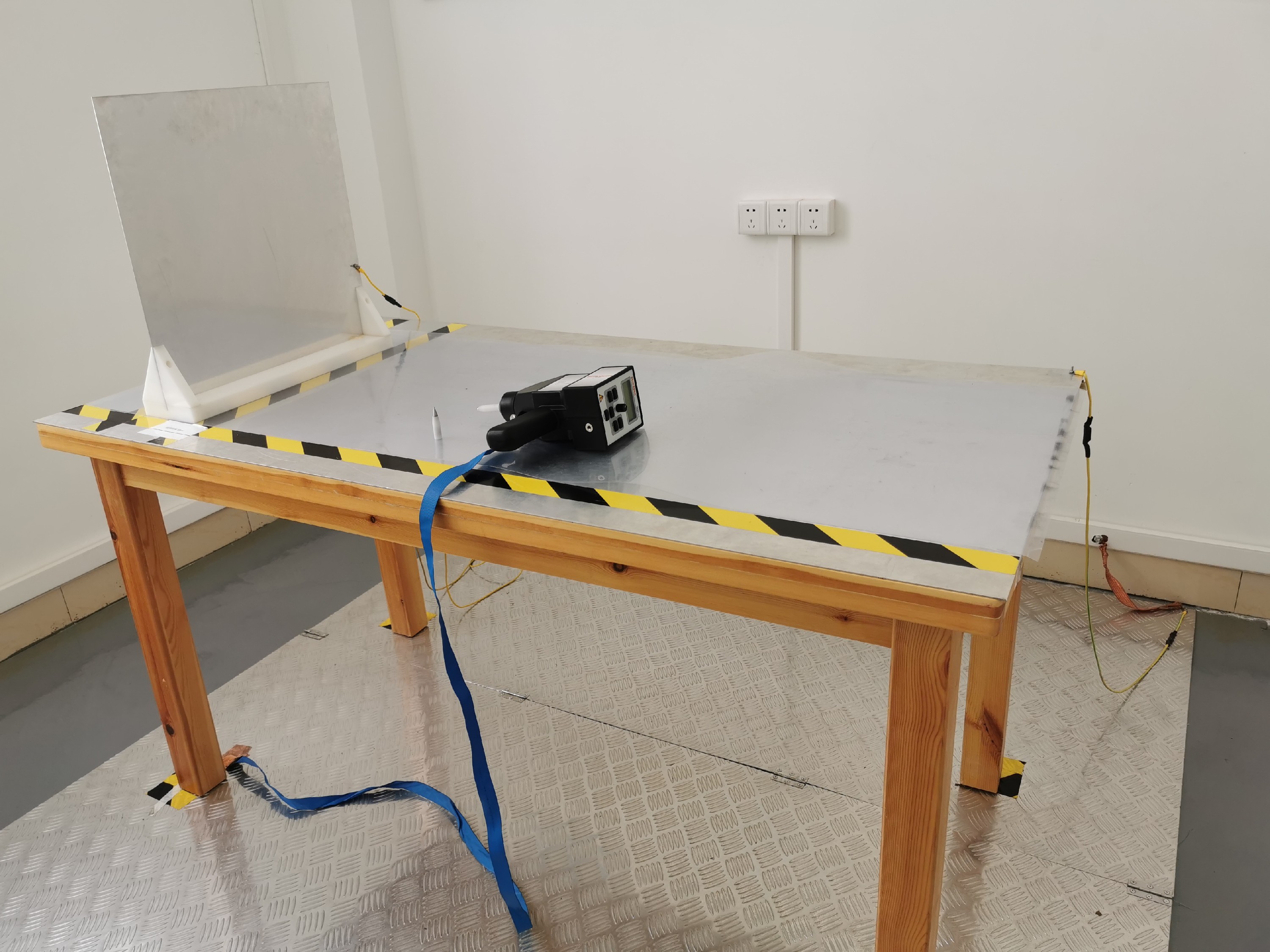 一般實(shí)驗(yàn)室的布置時(shí)這樣的,臺(tái)式設(shè)備放在離參考水平面0.8m高的桌子上,并用0.5mm的絕緣襯墊將受試設(shè)備和電纜與耦合板隔開(kāi),受試設(shè)備與耦合板各邊的距離不小于0.1m,在試驗(yàn)過(guò)程中,在EUT上選取放電點(diǎn),然后在確定在這一點(diǎn)是選擇接觸放電還是空氣放電,一般金屬外殼進(jìn)行接觸放電,絕緣外殼進(jìn)行空氣放電,有絕緣層的金屬外殼要刮破絕緣層進(jìn)行直接放電,每個(gè)放電點(diǎn)的放電次數(shù)不少于10次,每次間隔不小于1秒。